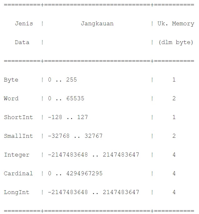 Jenis-jenis data yang digunakan pada lazarus free pascal yaitu: