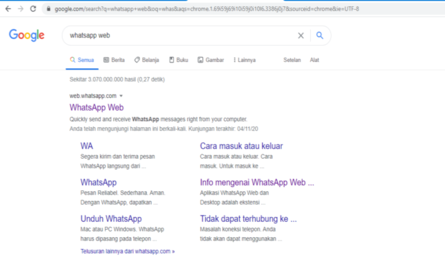 3.Jika sudah muncul tampilan seperti diatas berarti kalian sudah benar melakukannya, silahkan klik website whatsapp tersebut.