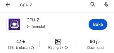 - Install terlebih dahulu aplikasi CPU-Z di Playstore. Setelah diinstal, buka aplikasi CPU-Z.