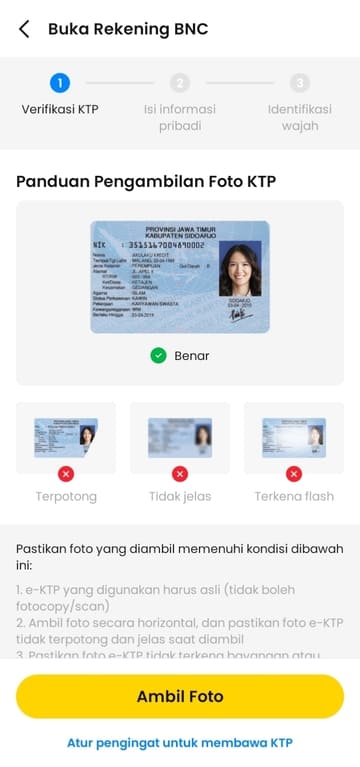 - Selanjutnya, Anda akan diminta untuk mengajukan foto ktp anda.