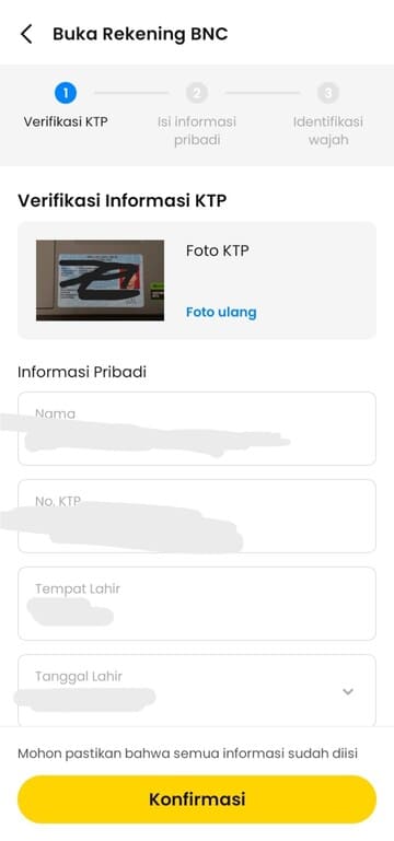 - Setelah anda memfoto KTP anda, anda akan diminta untuk melengkapi Kembali profil pribadi anda.