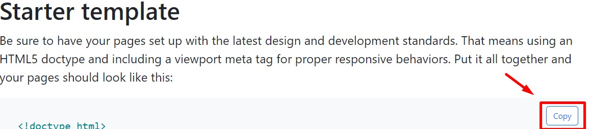 - Lalu lihat lah ke arah Starter Templete. Di situ terlihat bahwa tertadapat tulisan copy, Pencet copy untuk menyalin script.