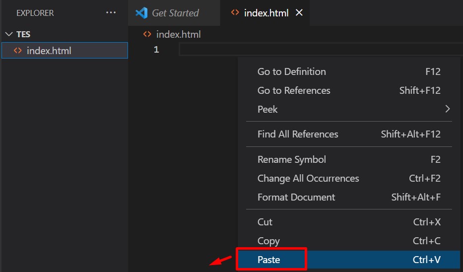 - Masuklah ke dalam text editor, Buat file baru beri nama index.html dan pastekan script tadi yang telah di dapatkan dari Starter Templete.