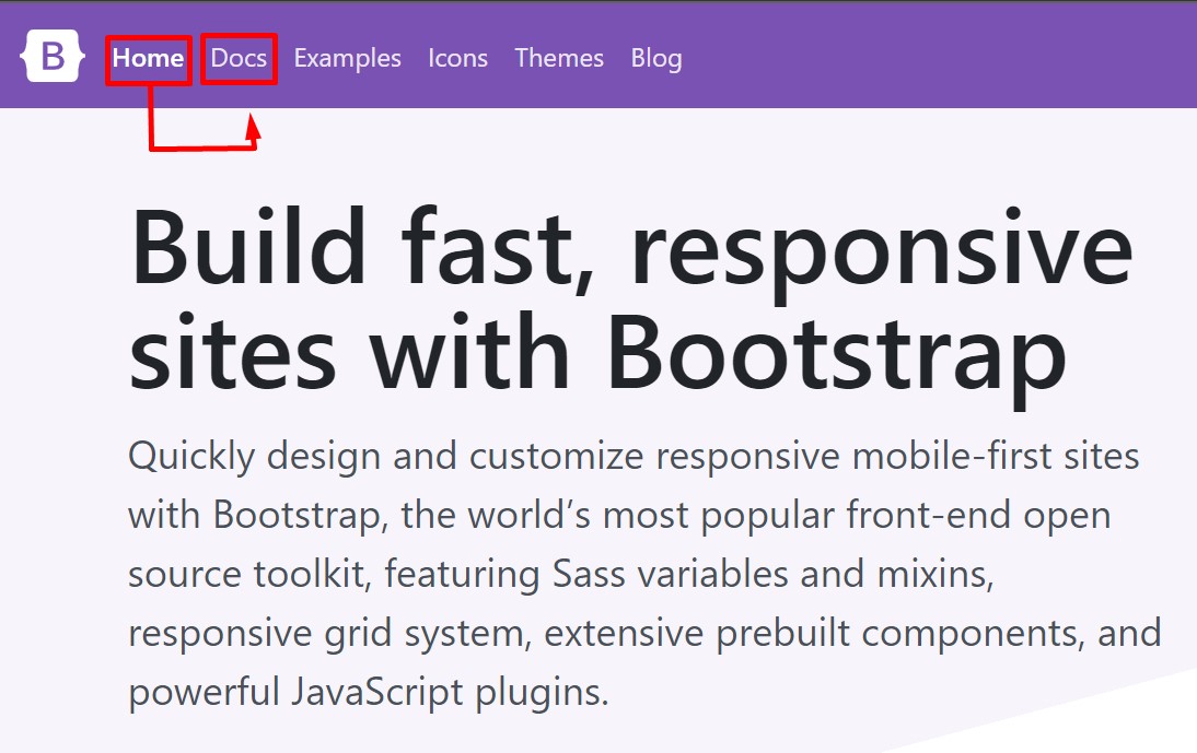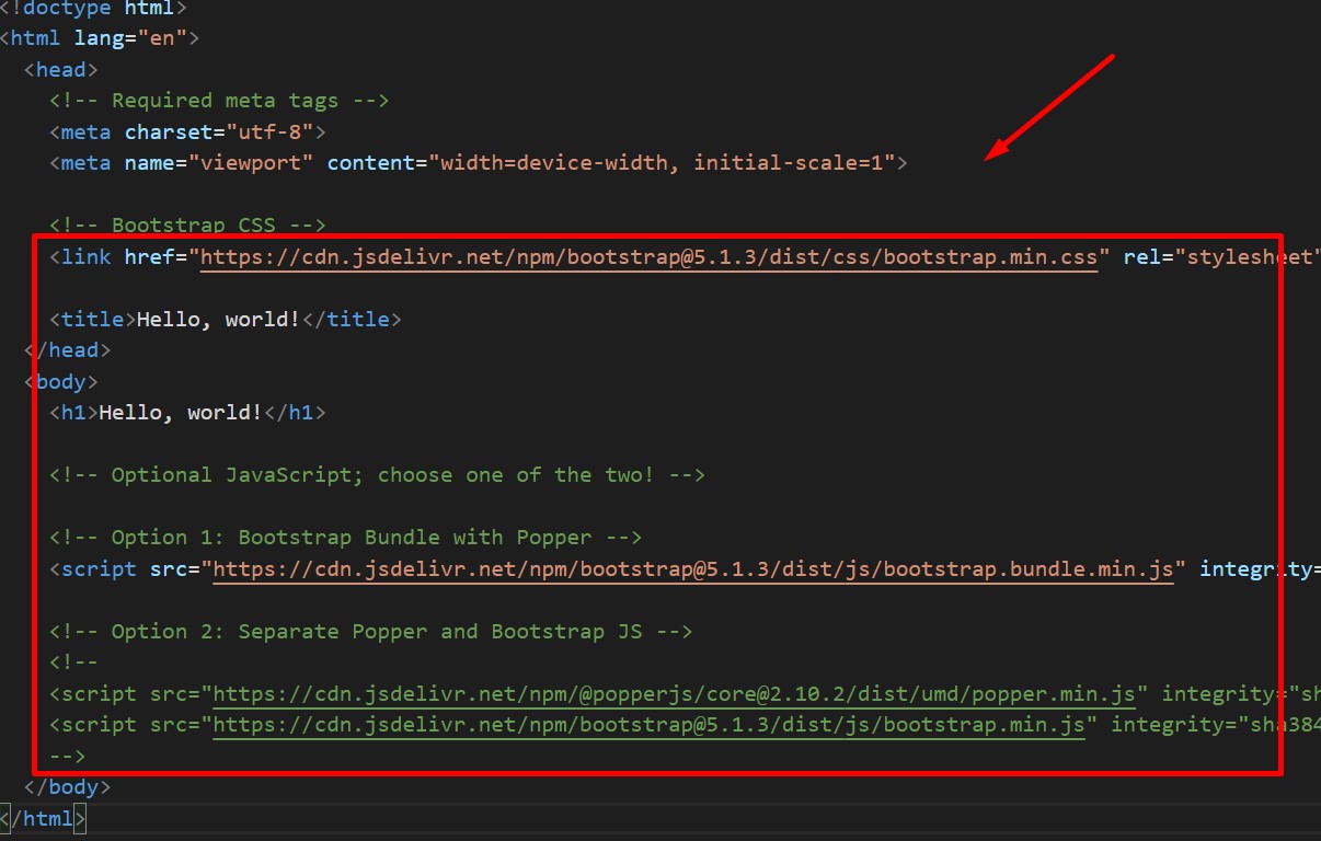 - Yang di tunjukan pada kotak merah di bawah ini adalah bentuk script untuk menginstal Bootstrap.