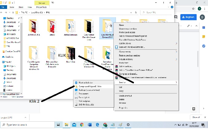 1.Klik data yang ingin di ZIP > klik kanan pada file yang sudah dipilih > Klik Send to > Klik Compressed (zipped) folder.