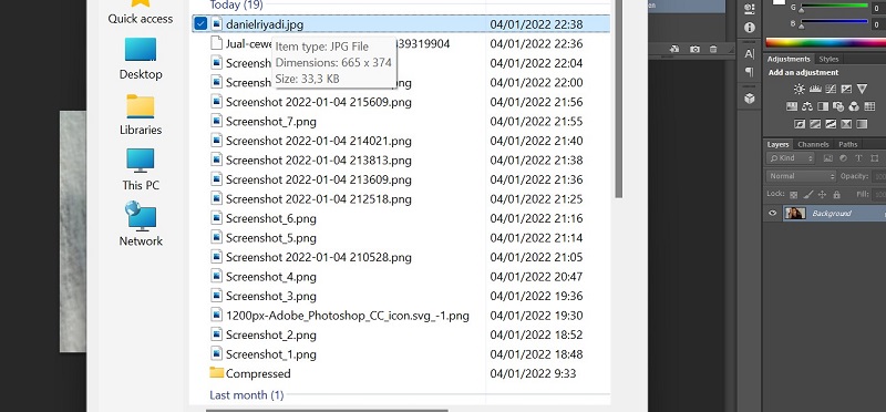 1. Kemudian, Pilih file > open > pilih foto > click ok.