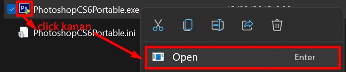 1. Langkah Selanjutnya, Buka aplikasi photoshoop dengan cara click kanan pada icon aplikasi Adobe Photoshoop > open.