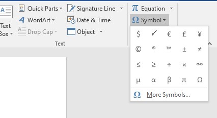 - Lalu pada group “symbols”, pilih “symbol” untuk memasukan symbol dollar.