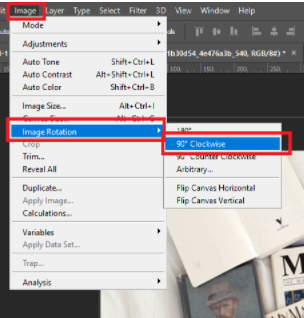 - masuk ke menu Image > Rotate image, dan pilih rotasi yang kalian inginkan