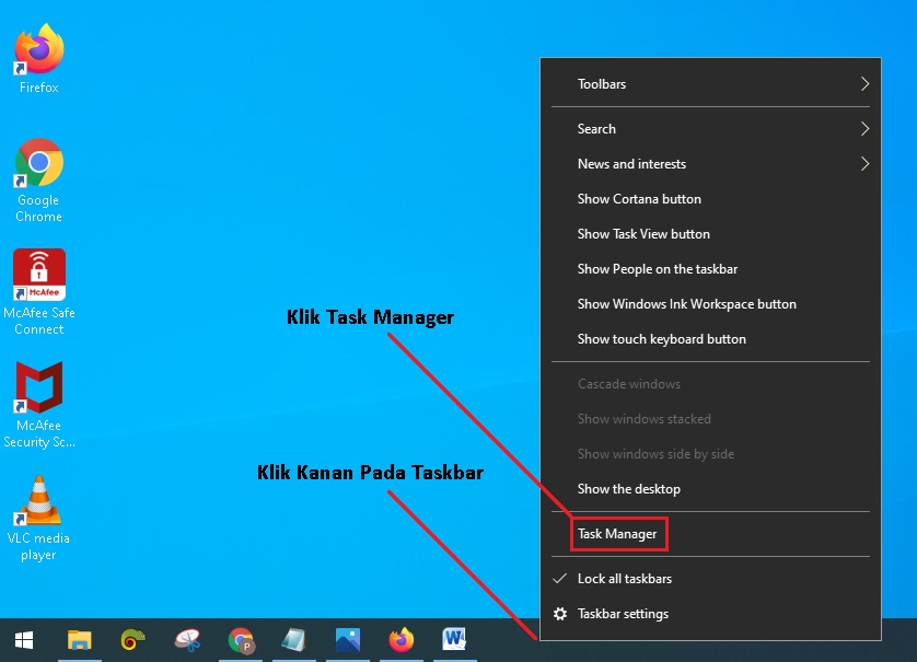 - Langkah pertama arahkan krusor mouse ke bagian Taskbar lalu klik kanan