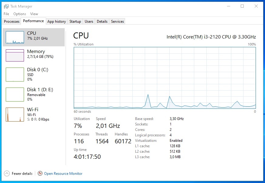 Yang paling utama dilihat yaitu ada 2 fitur yakni Processes dan Performance. Kedua fitur ini merupakan fitur yang paling sering digunakan.