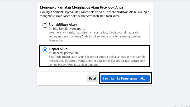 Berikut ini merupakan langkah-langkah menghapus akun di Facebook.