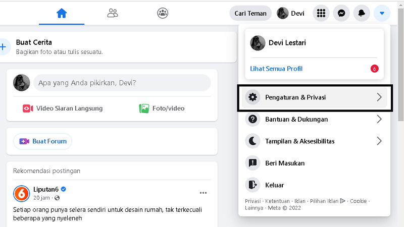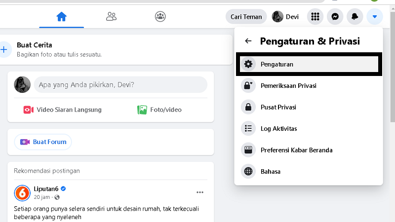 - Masuk ke Facebook anda dan pilih pengaturan & Privasi.