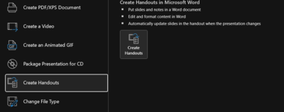 - Ekspor ke Word: Pilih opsi “Create Handouts in Microsoft Word” (Buat Handout di Microsoft Word) dan klik “Create Handouts”.