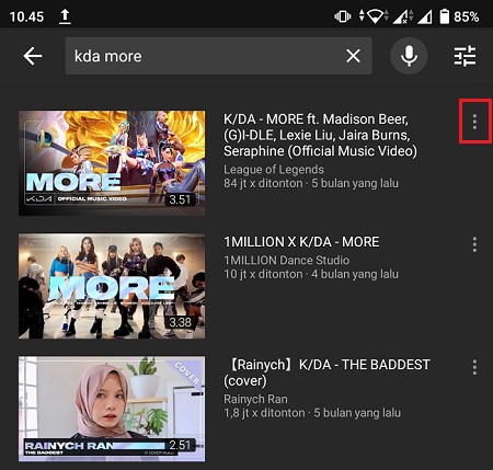 2. Jika video sudah muncul, klik ikon titik tiga yang berada di samping masing-masing video.