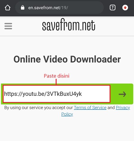 5. Jika link sudah tersalin, buka aplikasi browser kamu dan pergi ke situs en.savefrom.net. Saya sarankan untuk menggunakan browser Google Chrome.