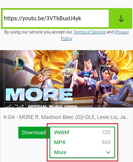 7. Jika video sudah muncul, klik opsi yang berada di samping tombol Download untuk memilih kualitas dan format video yang kamu inginkan.