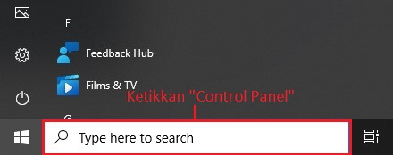 2. Kemudian, ketikkan Control Panel pada kolom Type here to search.