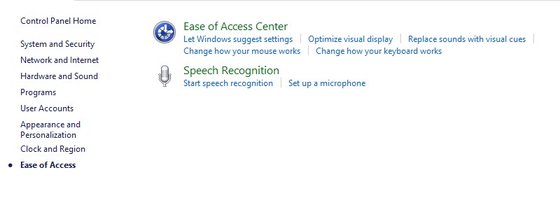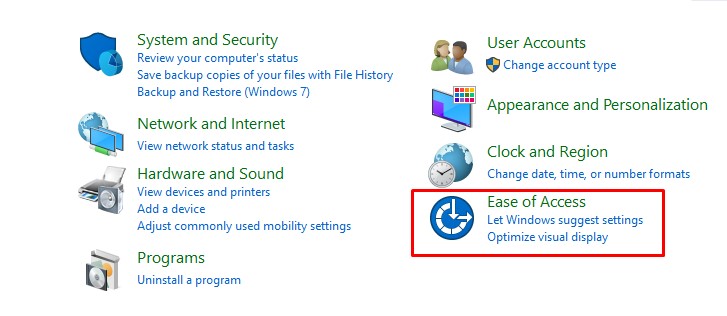 Ease of Acces ini berfungsi untuk menyesuaikan tampilan yang berhubungan dengan indera penglihatan, pendengaran ataupun mobilitas. Bagian ini memiliki kategori sebagai berikut :