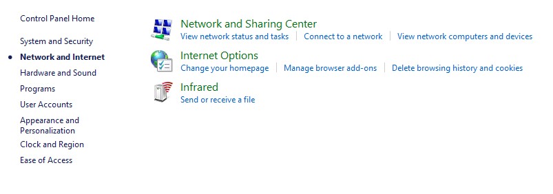 Network and Internet berfungsi dalam pengaturan yang berhubungan dengan jaringan, konfigurasi internet di dalam computer dan beberapa fungsi lainnya. Bagian ini memiliki beberapa kategori sebagai berikut :