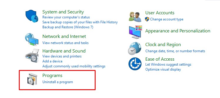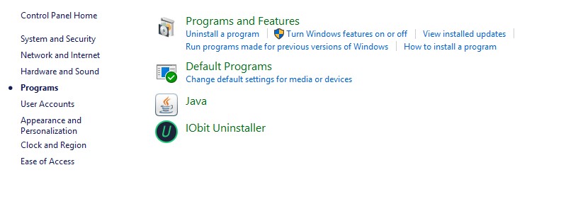 Programs berfungsi untuk melakukan pengaturan aplikasi pada computer. Disini user bisa melihat segala program yang ada di windows dan juga aplikasi yang terpasang di computer. Bagian ini memiliki kategori sebagai berikut :