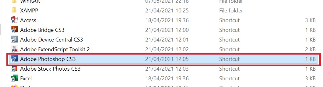 - Anda akan diarahkan pada lokasi file tersebut. Selanjutnya silahkan klik kanan Photoshop.