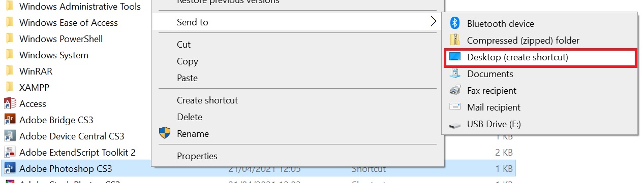 - Kemudian pilih Send to > Desktop (create shortcut).