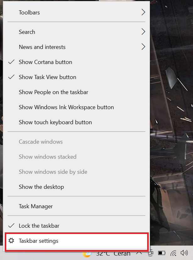 - Langkah pertama yaitu klik kanan pada Taskbar kemudian klik Taskbar Setting