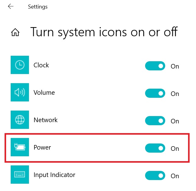 - Langkah terakhir yaitu ON dibagian icon battery untuk menampilkan icon battery